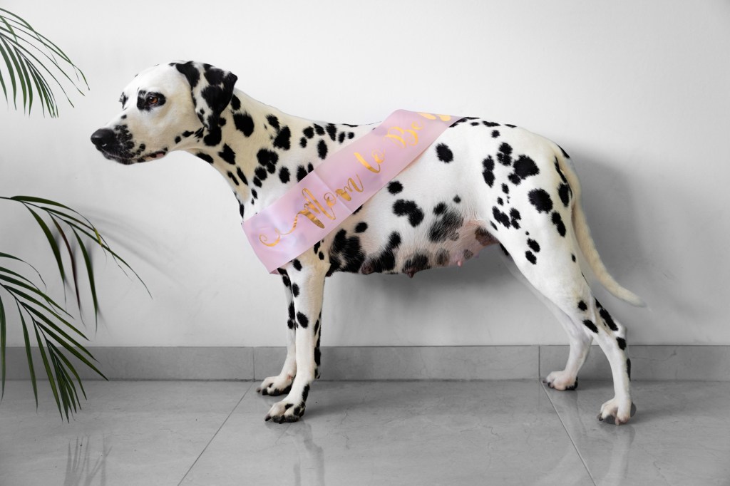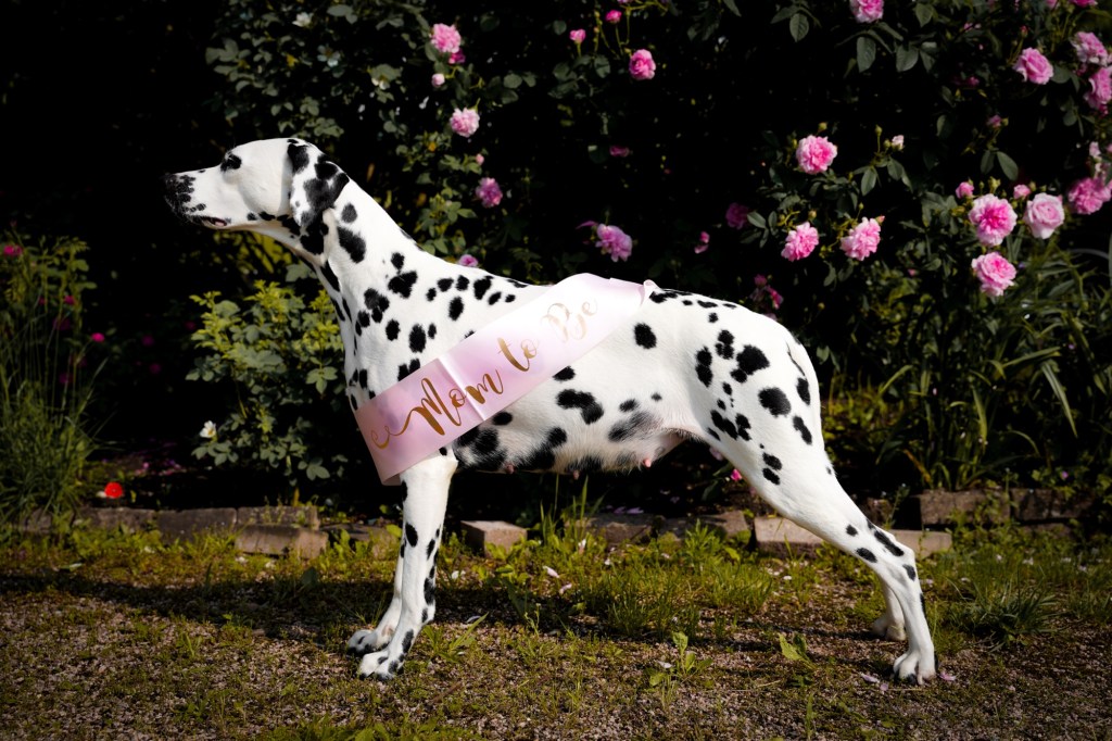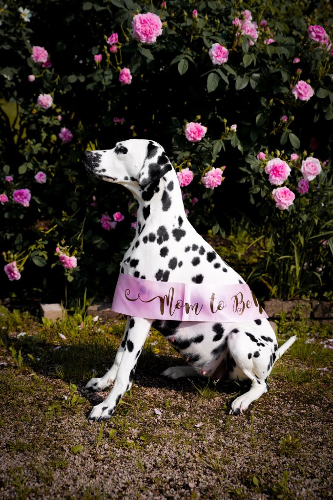 Zudem hat ihr Haaren deutlich zugenommen. Es ist häufig so, dass Hündinnen vor allem im letzten Drittel der Trächtigkeit vermehrt haaren. Also wenn der Dalmi Glitzer vorher noch nicht überall war, jetzt ist er’s. 😂 Auch in die Welpenmappen hat er sich geschlichen. 🤷🏼♀️ Bleibt einfach nicht aus…diese habe ich nämlich nun auch vorbereitet.