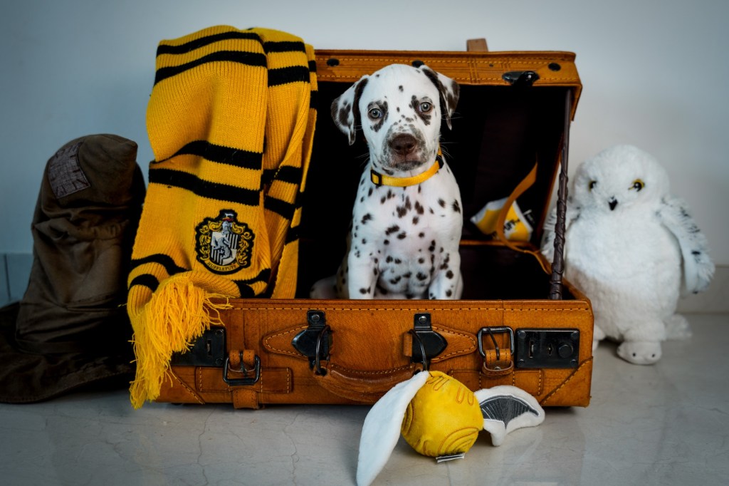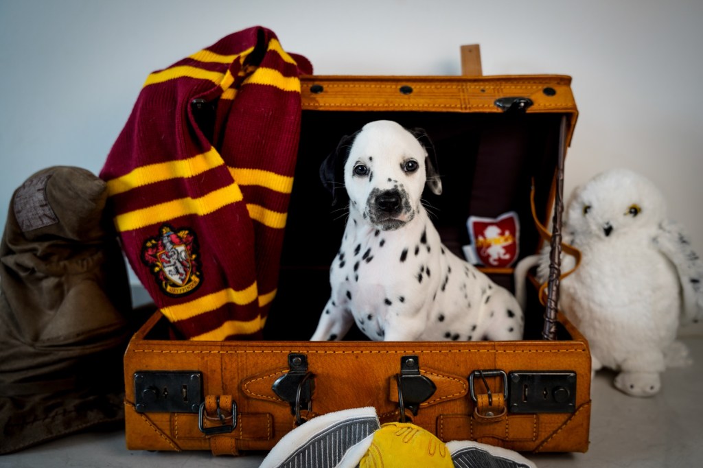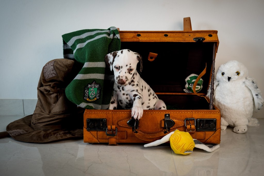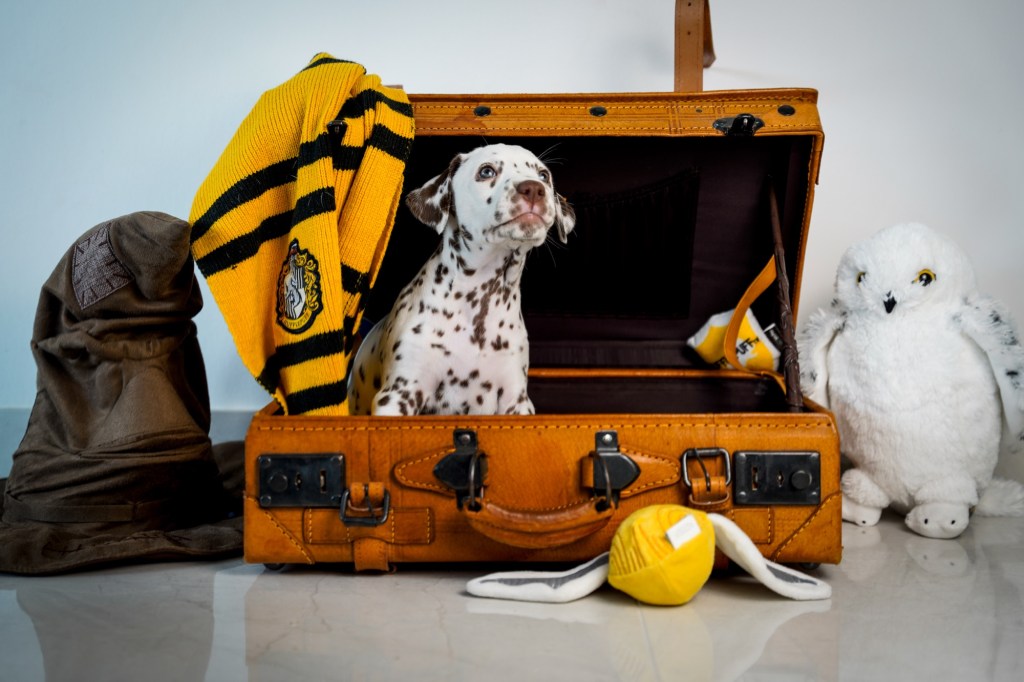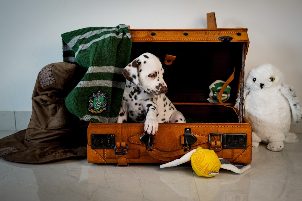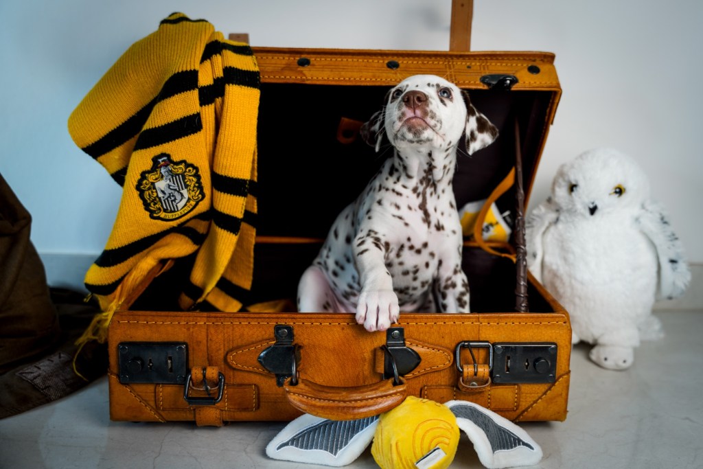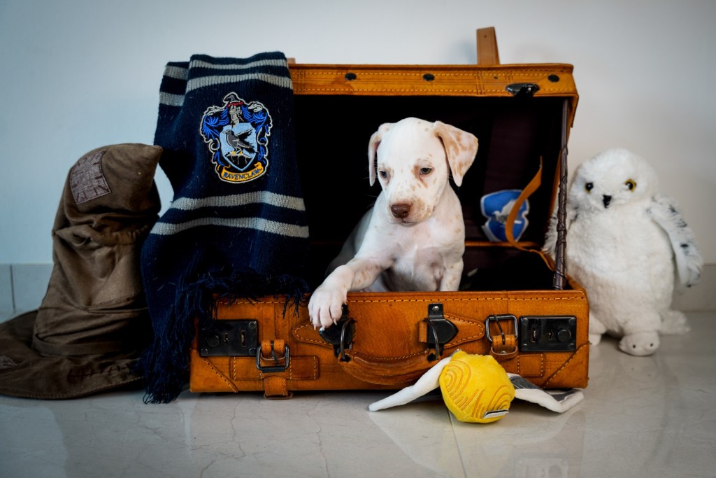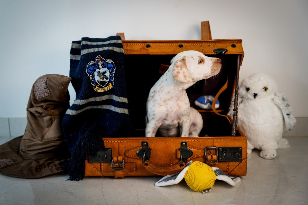 Die Hündinnen mit ihren gepackten Köfferchen: